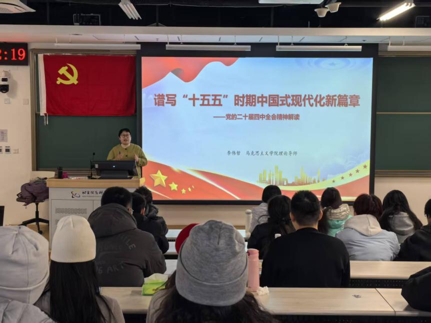 李伟哲从准确把握“十四五”规划完成情况、国内外形势和中国式现代化任务、“十五五”规划主要内容及亮点特点等方面,以党的二十届四中全会重要文献为基础,系统阐释了全会精神的核心内涵。她指出,中国式现代化是全体人民共同奋斗的伟业,新时代青年应该将个人成长融入国家发展,将青春投入中华民族伟大复兴火热实践。