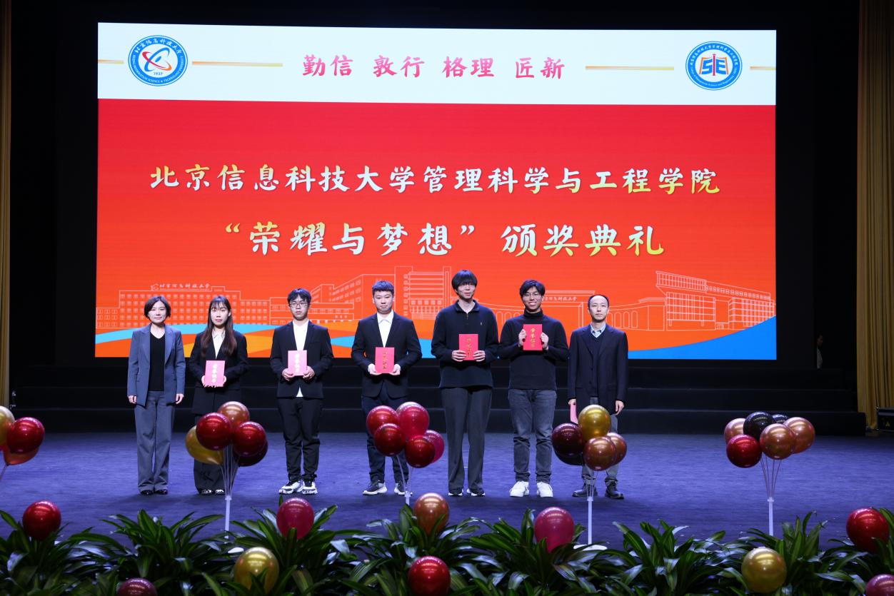财务处处长张莉、太阳集团tyc138副院长车蕾共同为2025年度在学科竞赛中取得优异成绩的学生颁奖。表彰他们在各类高水平赛事中沉着应战、锐意进取,以扎实的专业功底和出色的团队协作屡创佳绩,展现了管院学子敢闯会创、追求卓越的青春风采。